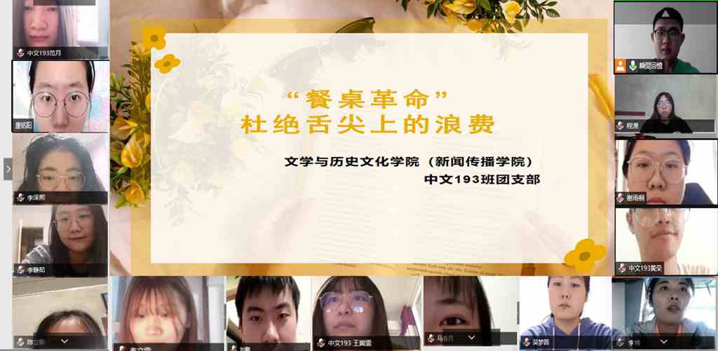 为切实培养学生节约习惯,引导形成“厉行节约、反对浪费”的新风尚,通信与电子工程学院、文学与历史文化学院、哲学与法学学院充分发挥校园文化的育人功能,组织学生召开了“餐桌革命”线上主题班会。在活动中,大家集思广益,通过查摆校园中存在的浪费现象,有针对性地提出了解决问题的建议和办法,使安静就餐、使用公筷公勺、勤俭节约、健康饮食等理念更加深入人心。