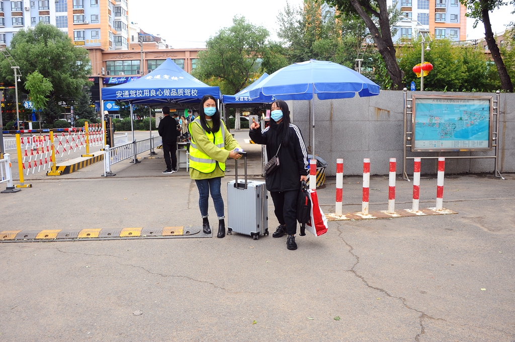 5日早上,首批返校学生志愿者们从7:30开始全部进入工作状态,在每个学院的接待点都能看到他们忙碌的身影。其中,由退役大学生士兵们组成的志愿服务队伍统一身穿“绿马甲”,有序地开展志愿服务工作,及时做好第二批返校报到同学的扫码测温、方向指引、行李搬运和沟通协调等工作,“绿马甲”们忙碌的身影穿梭在中区西门和东区北门两个入口,成为欧冠第二批返校同学报到期间校园中的一道亮丽的风景线。