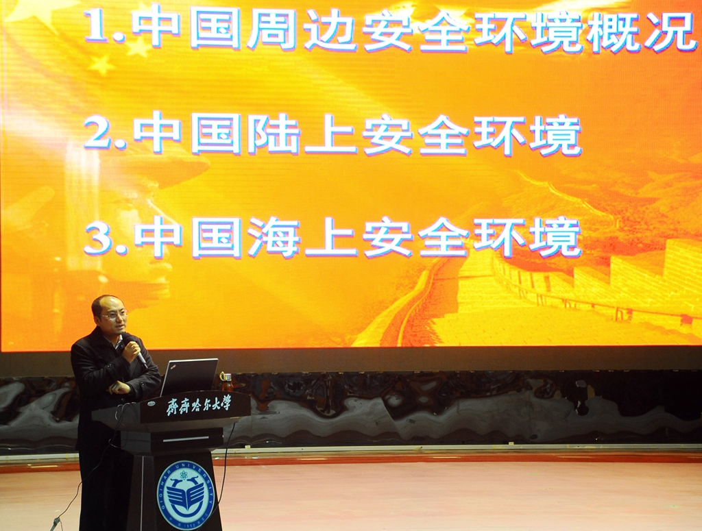 课上,李彦涛老师以《中国周边安全环境》为题,从军事角度对中国周边安全环境概况、中国陆上安全环境及中国海上安全环境进行了深入浅出的解读,使同学们进一步强化了国防观念,开拓了军事视野,提升了军事理论素养。