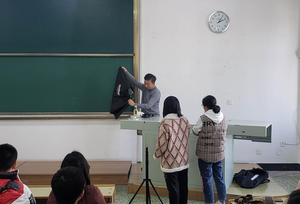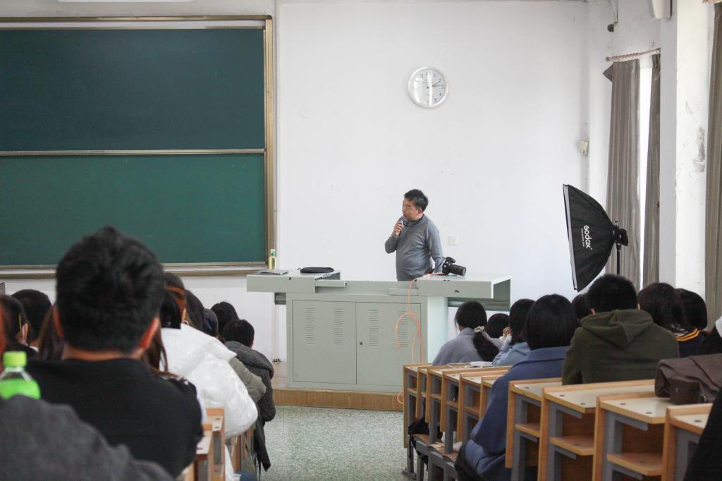 讲座中,李贺老师以《用镜头发现新闻中的美》为主题,为大家简要介绍了光的运用、光圈改变的技巧、如何利用角度拍摄照片等内容。他还结合自己以往拍摄的照片为大家介绍了大光圈、长焦距拍摄效果的对比注意事项。全场同学们跟随着李老师的讲述,身临其境般感受着他多年从事新闻摄影工作的心路历程和创作经历。