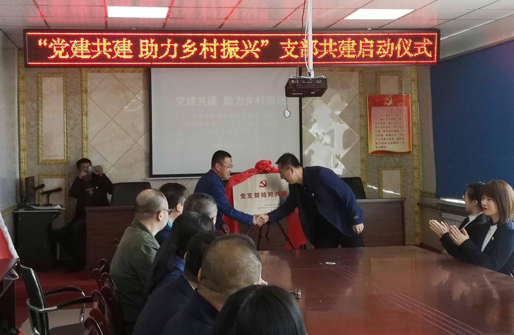 马克思主义学院副院长、教工党支部书记张春波和前程村党支部书记齐振刚共同为党支部共建揭牌。