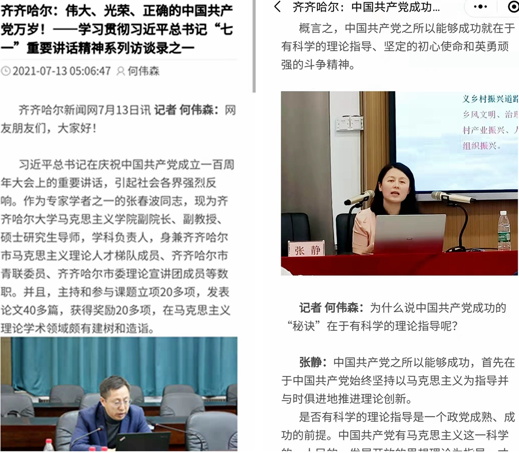 习近平总书记在庆祝中国共产党成立一百周年大会上的重要讲话,全面回顾了我们党100年来团结带领全国各族人民不懈奋斗走过的光辉历程和作出的伟大历史贡献。使广大人民置身于荡气回肠的奋斗过程,感慨所取得震古烁今的伟大成果。这是一份梳理党向历史和人民交出满意答卷的“总结单”,是新时代立足中国实际不断开创马克思主义新境界的“指南针”,是共产党人理想信念精神之钙的“鉴定书”。欧冠马克思主义学院与齐齐哈尔新闻网合作,以专栏形式推出了10篇学习贯彻习近平总书记“七一”重要讲话精神系列访谈,累计阅读达万次。