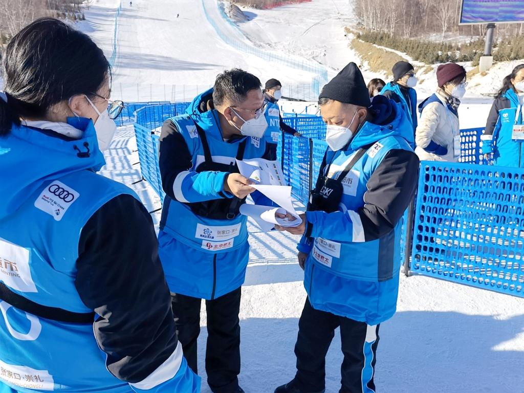 2021-2022国际雪联单板滑雪和自由式滑雪障碍追逐世界杯为期7天,共有389名国内外运动员参赛,该赛事是张家口4项测试赛和测试活动中时间最长、规格最高的一项。在此次裁判工作中,郭晗老师作为终点NTO主管,负责终点线、缓冲区、混合区的全面工作,同时担任仲裁委员工作。王诚民老师作为终点线裁判员,负责每组运动员通过终点线时的名次和是否犯规判定工作。他们在大赛全程裁判工作中无惧严寒、认真负责,得到了大赛组委的肯定和认可。
