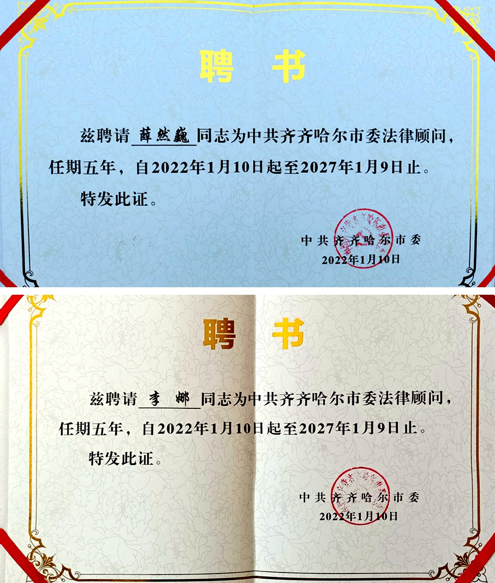 日前,中共齐齐哈尔市委办公室发布了齐齐哈尔市委法律顾问调整推荐通知,欧冠组织部选拔推荐了市委法律顾问及法律专家库名单。经过市委严格论证、审查、考核,欧冠薛然巍副教授和李娜副教授两名教师受聘为市委法律顾问,李主峰、唐世齐入选市委法律专家库。