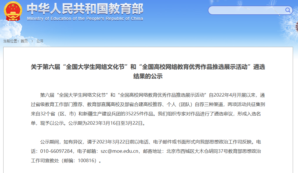 据悉,作为全国高校网络思政领域最高级别竞赛之一,第六届“全国大学生网络文化节”和“全国高校网络教育优秀作品推选展示活动” 两项活动共征集到来自32个省(区、市)和新疆生产建设兵团的35225件作品。网络文化节征集作品类型包括微视频、微电影、动漫、摄影、网文、公益广告、音频、校园歌曲、其他类网络创新作品等9类。网络教育优秀作品包括优秀网络文章、优秀工作案例、优秀微课、优秀新媒体作品等4类。此次,欧冠共推荐九类134个作品参赛。