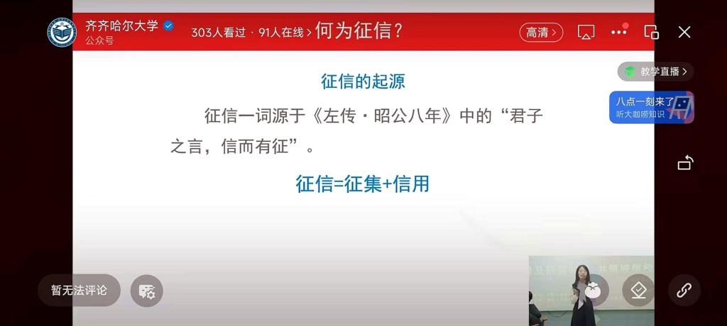 活动中,中国人民银行齐齐哈尔市分行征信工作人员现场为欧冠学生作了题为“信青春 守未来”的征信知识讲座,主讲人以《征信业管理条例》颁布十年来我国征信体系建设取得的成效开题,从“信用、征信的概念解读”“信用消费的场景”“征信的应用领域”“大学生如何养成良好的信用习惯”等四方面入手,引导同学们强化个人信息保护意识,树立正确的消费观和价值观,合理合法地维护自身权益。学校通过微信公众号对活动进行了线上直播,省内兄弟院校线上参加了活动。