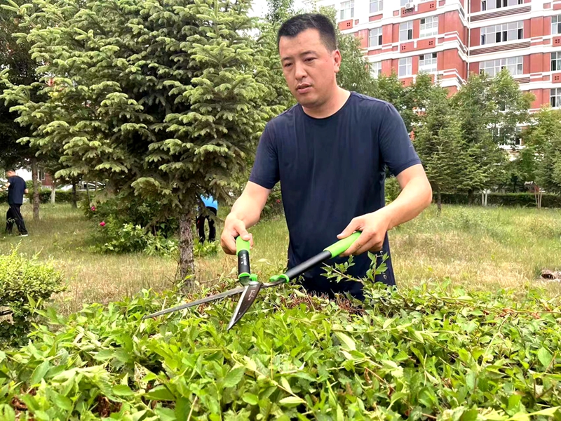 “紧密联系师生,扎根基础服务”,是石振宇的工作信条。作为一名后勤干部,他始终不忘服务重点是师生,始终牢记全心全意为人民服务的根本宗旨。总务科负责全校的室外卫生保洁、绿化美化工作。为保证校园环境的干净、整洁,石振宇坚持每天提前一个小时到学校例行对四个校区进行检查巡视,遇见卫生情况不达标或者影响师生出行安全的高大乔木都会逐一记录,为后续的修剪申报与实施做好准备工作,2022年度他带领员工修剪存有安全隐患的树木共计55株;发现部分树种出现虫害的情况后,他第一时间联系林学专家虚心请教治理办法,经多次试验探索终于找到了一种经济实惠、可以从源头消灭害虫天牛的方法,组织员工及时对受侵害的45株糖槭进行了注射及喷涂处理,防止了受害面积的进一步扩大;绿化工作是繁重而枯燥的,但石振宇坚持苦中作乐,炎炎夏日头戴草帽手持工具和其他同事一起栽种花卉、割草、修剪绿篱等,去年夏季共将8000余株草花栽种在各花坛和花池中,利用洒水车和水带对校园绿地灌溉16次。