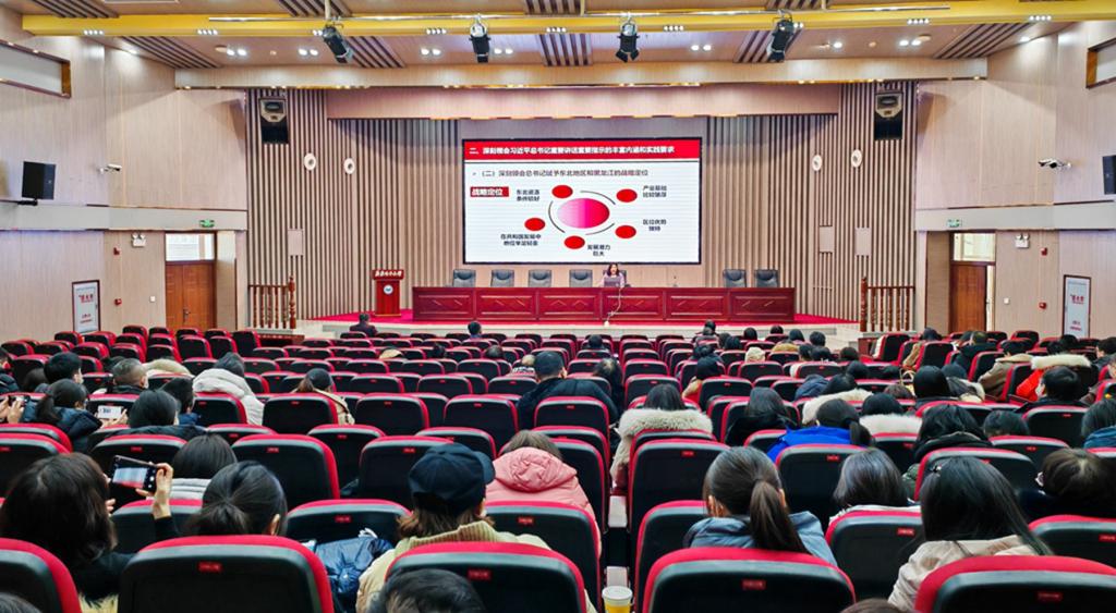 学习有“精度”,让宣讲方式“活起来”。为深入推进学习习近平总书记视察我省期间的重要讲话重要指示精神走深走实,全面领会习近平总书记重要讲话重要指示精神的精髓要义,学校各基层党委、直属党支部在学深悟透上精准发力,积极组织党员干部和师生员工以党委理论学习中心组专题学习、专题读书班、教职工政治理论学习、党支部“三会一课”等形式对习近平总书记视察我省期间的重要讲话重要指示精神进行了系统学习,在逐字逐句悟中筑牢了理论学习根基。学校党委宣传部按照校党委文件组建了习近平总书记视察我省期间重要讲话重要指示精神专家宣讲团,张永军、徐凤江、吴丹、赵越、刘媛媛、刘越男等多位专家学者先后在全校范围内开展了12场专题宣讲,宣讲报告思想深刻、生动透彻、点面结合、深入浅出,贴近学校发展实际,对凝心聚力推动高水平大学建设具有很强的针对性、前瞻性和实践性,让全校教职员工倍受鼓舞、收获颇丰;校团委组织“青年学生党的创新理论宣讲团”在全校团员和青年中开展了3场习近平总书记重要讲话重要指示精神及省委十三届四次全会精神主题宣讲,青年学生用“青言青语”表达了坚定不移听党话跟党走、为强国建设民族复兴伟业挺膺担当的豪情壮志,让思想的光芒照亮成长成才之路;为深化新时代文明实践中心共建共创,推动习近平总书记重要讲话重要指示精神家喻户晓、深入人心,欧冠官方网站驻永安村第一书记、工作队队长刘忠双为全村部分党员和群众代表开展了学习贯彻习近平总书记视察黑龙江重要讲话重要指示精神宣讲,让习近平总书记的亲切关怀、殷切期望直抵百姓心底,让基层群众真正感受到党的温暖。