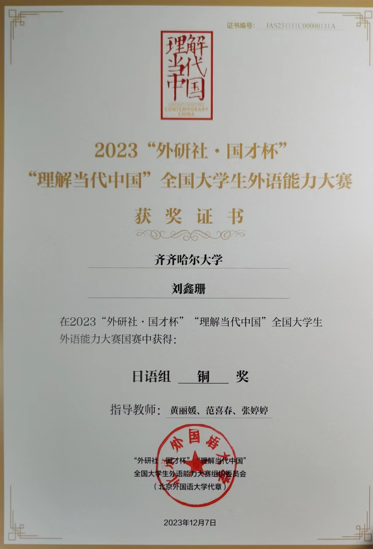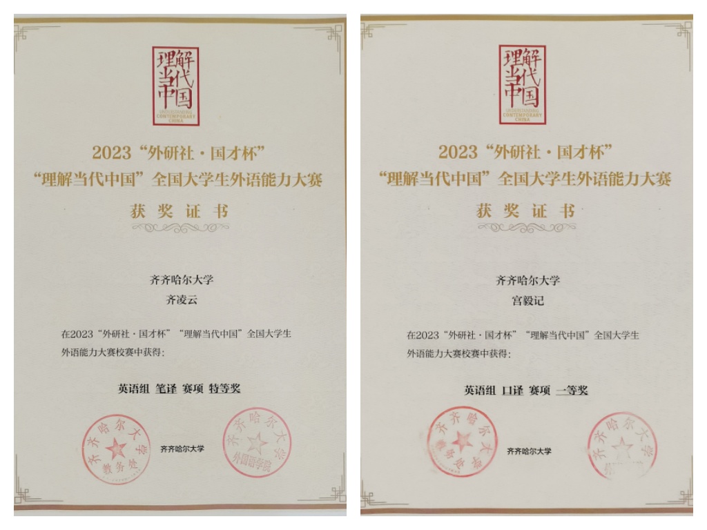 近期,欧冠学生参加了2023“外研社·国才杯”“理解当代中国”全国大学生外语能力大赛。经过各轮赛事的激烈角逐,日语专业刘鑫珊斩获国赛铜奖,英语专业宫毅记、齐凌云,俄语专业刘丽艳、德语专业杨思琪斩获省赛银奖,俄语专业张瑞雪、德语专业于彤彤斩获省赛铜奖。