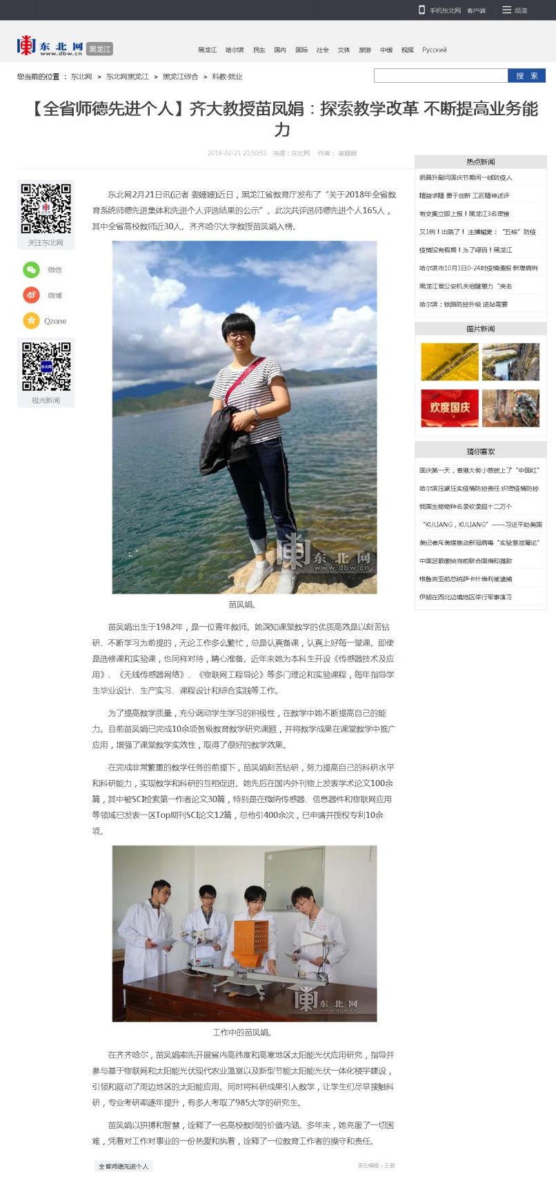【东北网】【全省师德先进个人】齐大教授苗凤娟