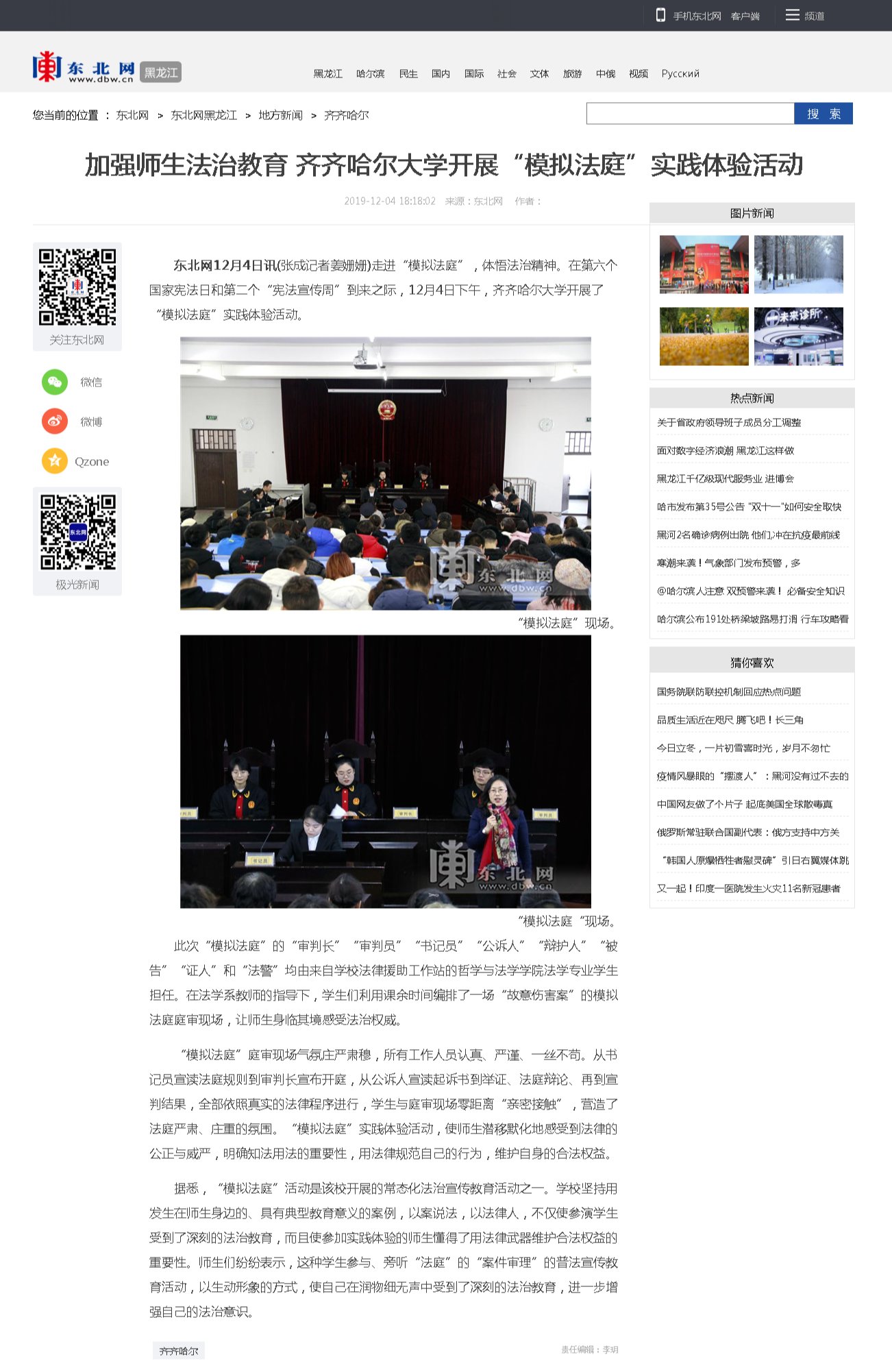 【东北网】加强师生法治教育 欧冠官方网站开展“模拟法庭”实践体验活动