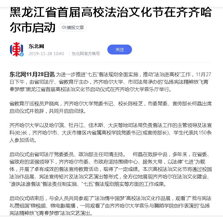 【东北网】黑龙江省首届高校法治文化节在齐齐哈尔市启动