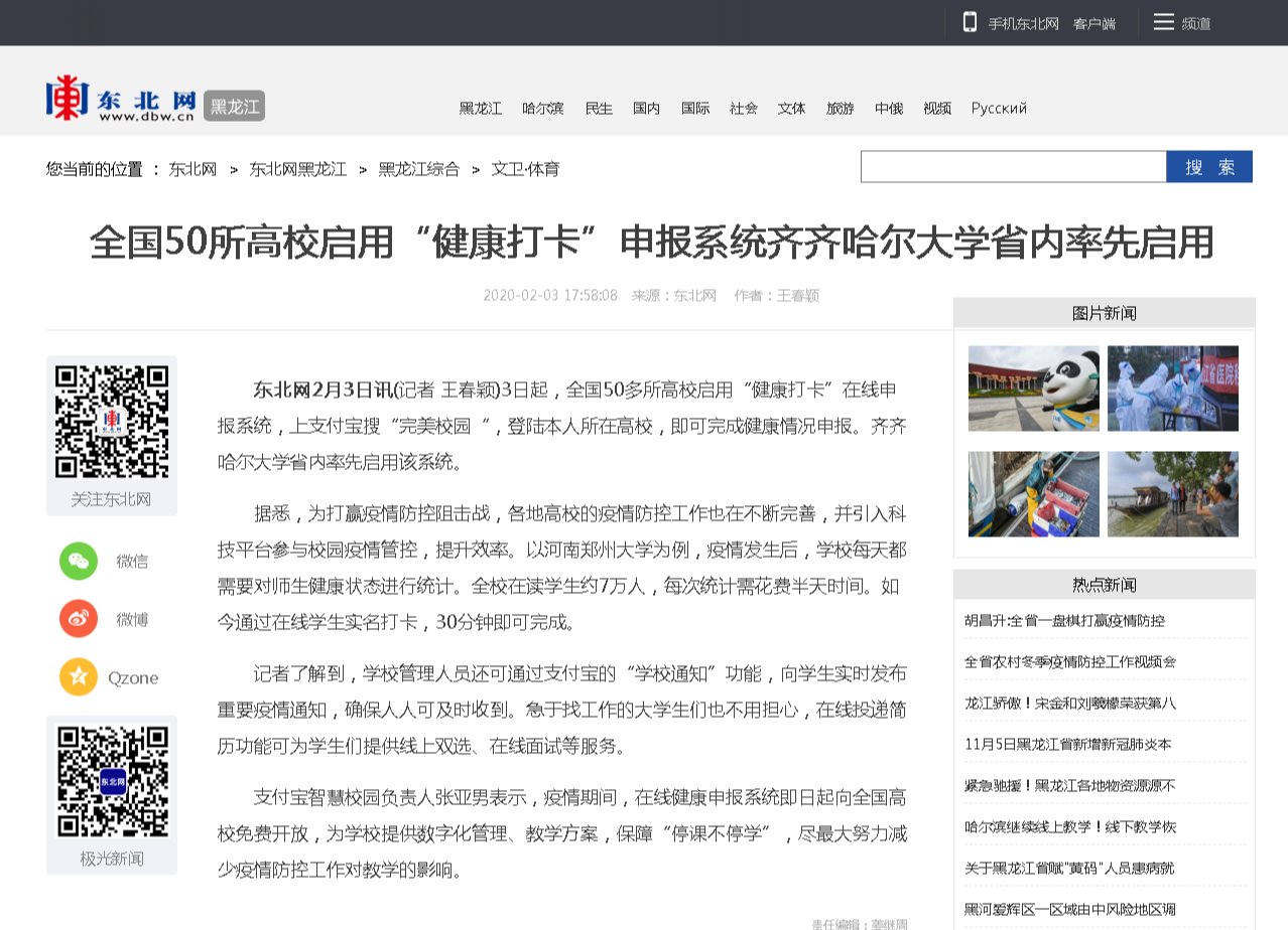 【东北网】全国50所高校启用“健康打卡”申报系统欧冠官方网站省内率先启用
