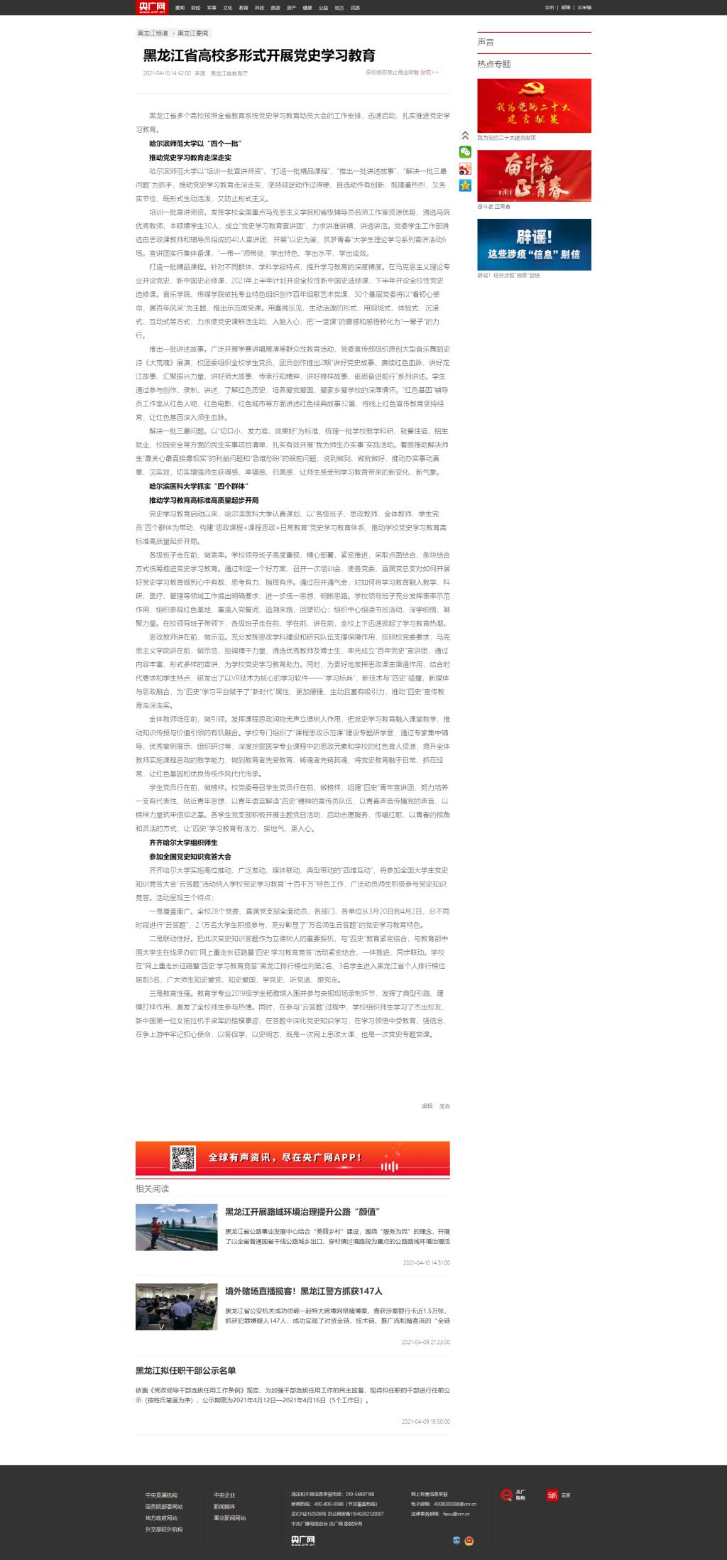 【国际在线】黑龙江省高校多形式开展党史学习教育