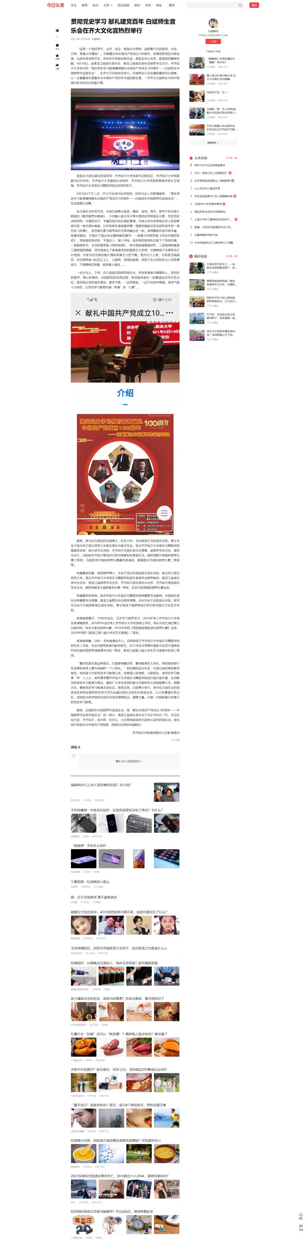 【今日头条】贯彻党史学习 献礼建党百年 白斌师生音乐会在齐大文化宫热烈举行