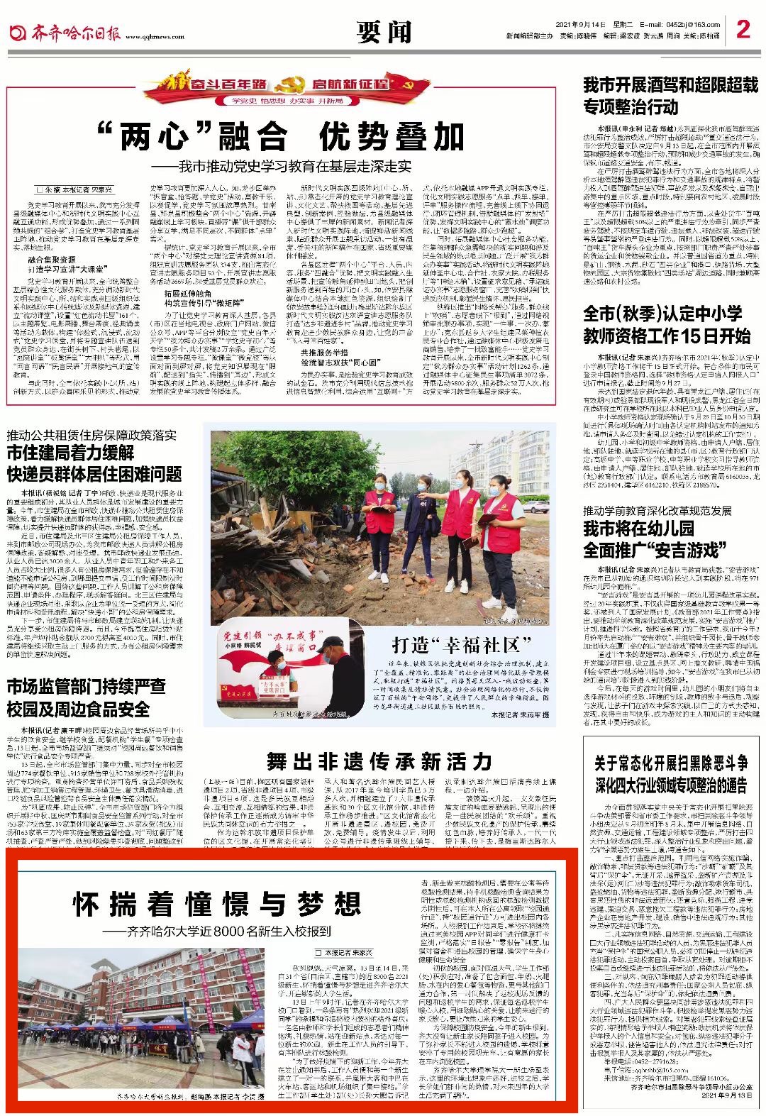 【齐齐哈尔日报】怀揣着憧憬与梦想——欧冠官方网站近8000名新生入校报道