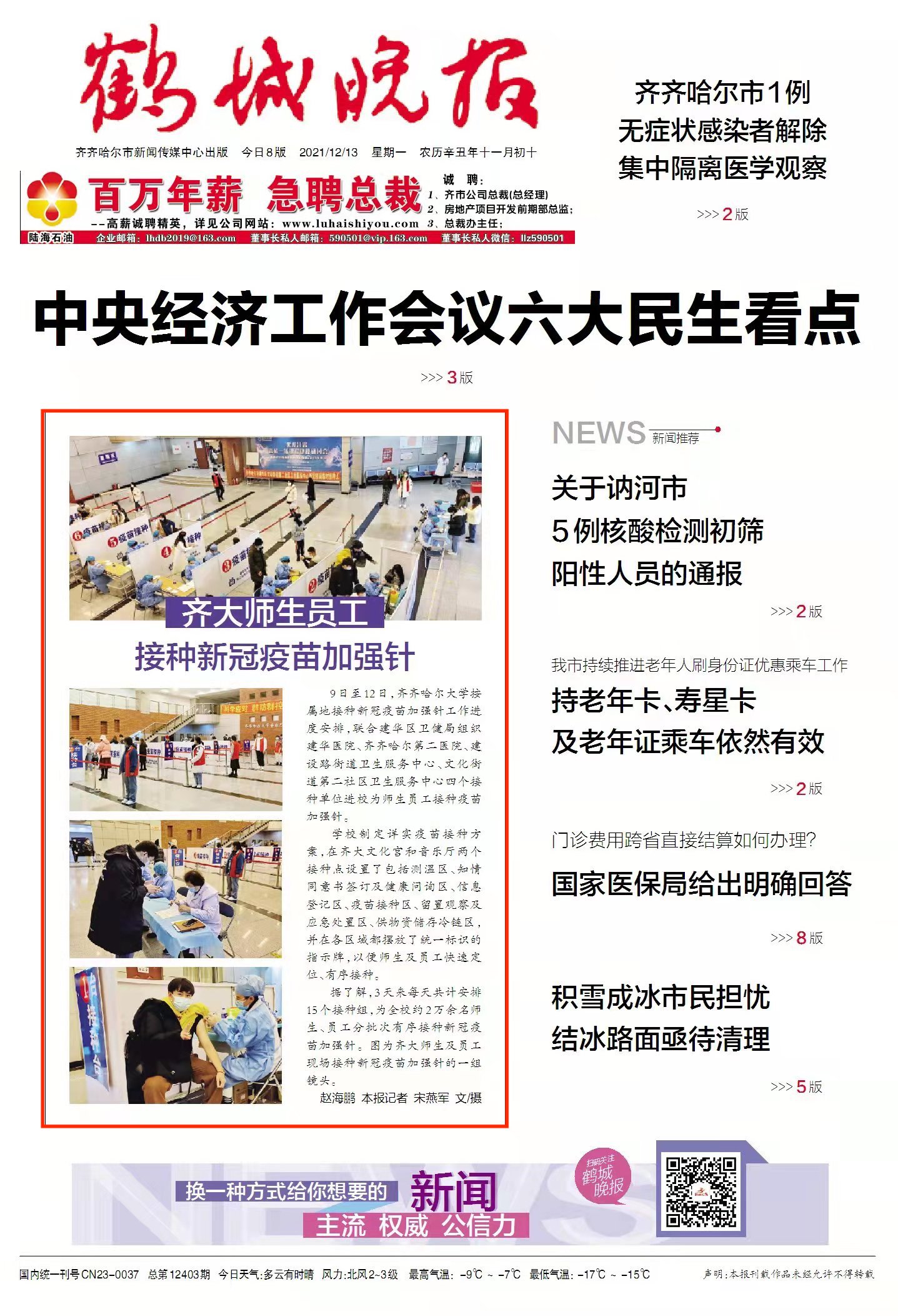 【鹤城晚报】齐大师生员工接种新冠疫苗加强针