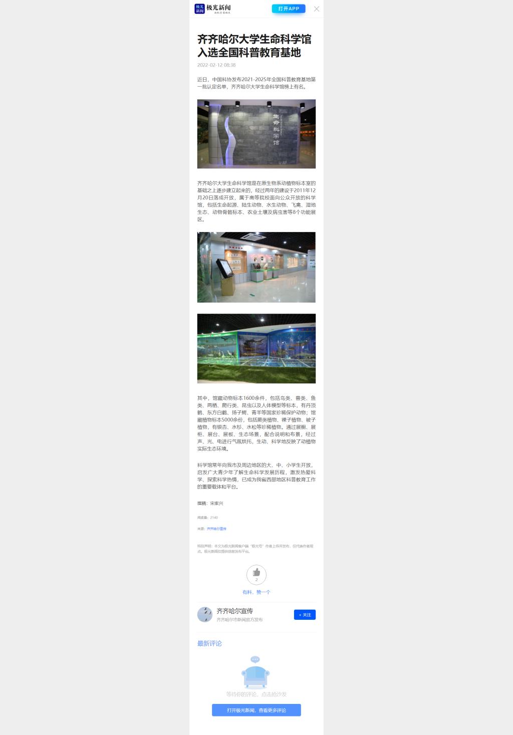 【极光新闻】欧冠官方网站生命科学馆入选全国科普教育基地