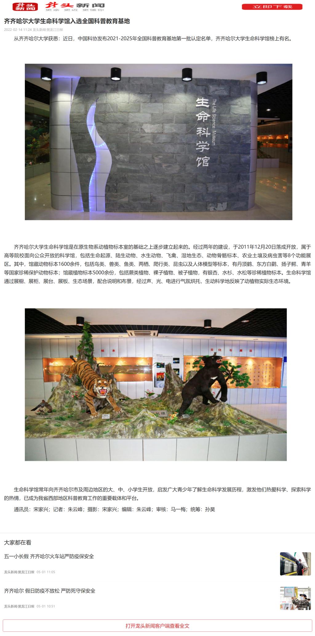 【龙头新闻】欧冠官方网站生命科学馆入选全国科普教育基地