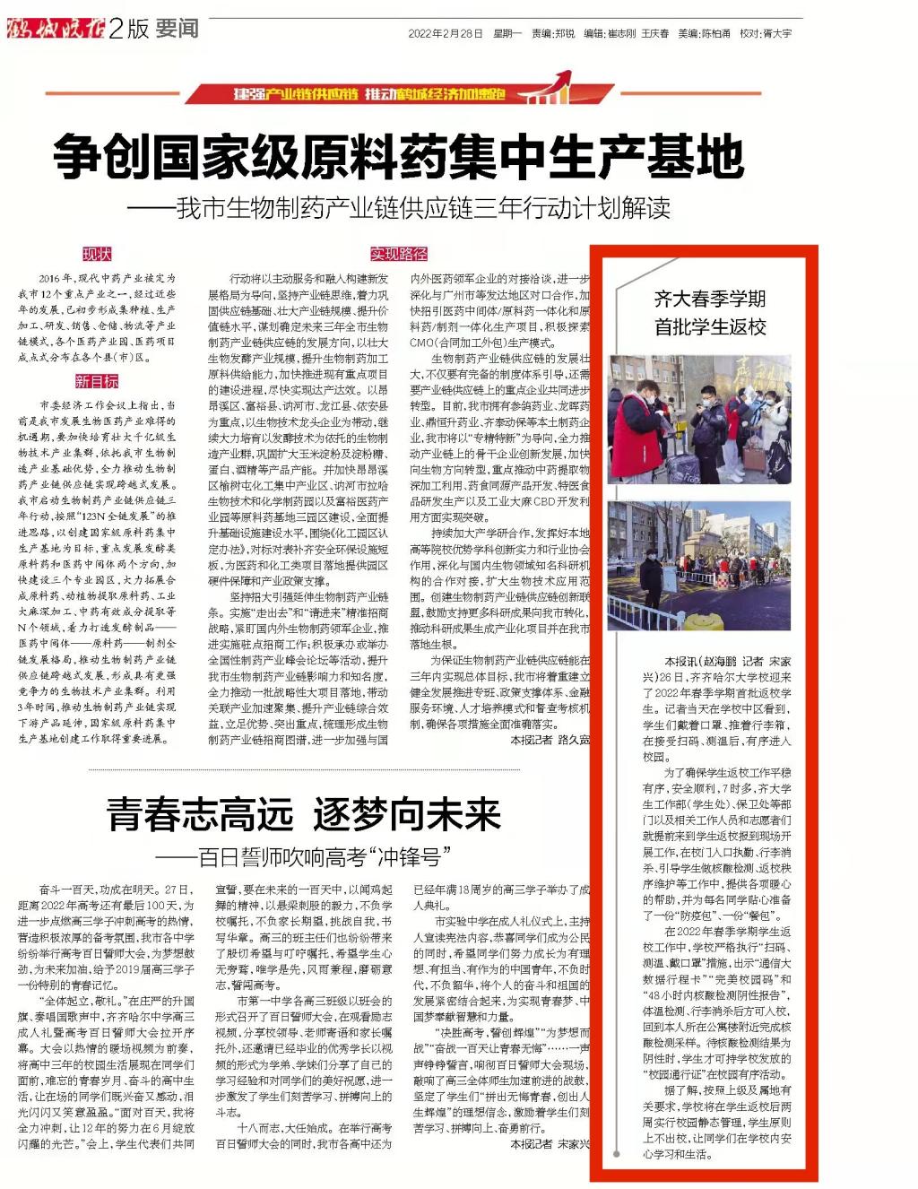 【齐齐哈尔日报】欧冠官方网站春季学期首批学生返校