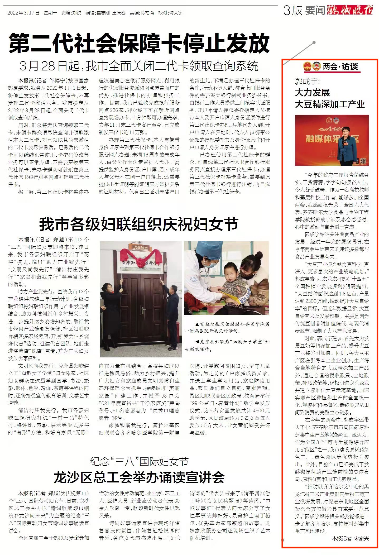 下一条:【极光新闻】全国人大代表郭成宇:大力发展大豆精深加工产业 拉动国产大豆自给率