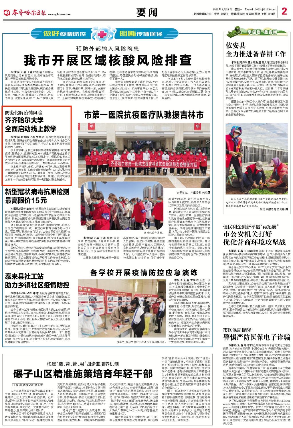【齐齐哈尔日报】防范化解疫情风险,欧冠官方网站全面启动线上教学