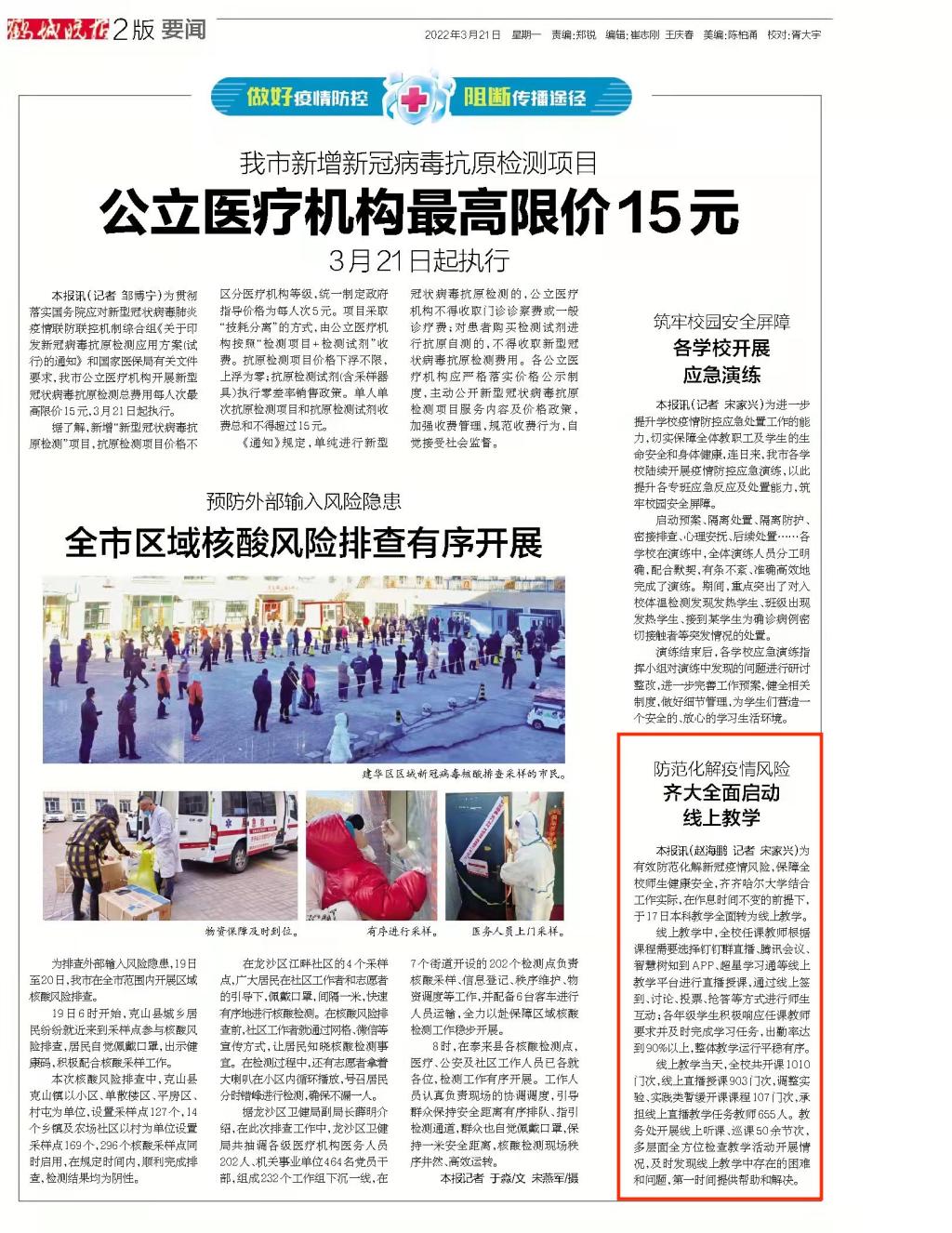 【鹤城晚报】防范化解疫情风险,齐大全面启动线上教学