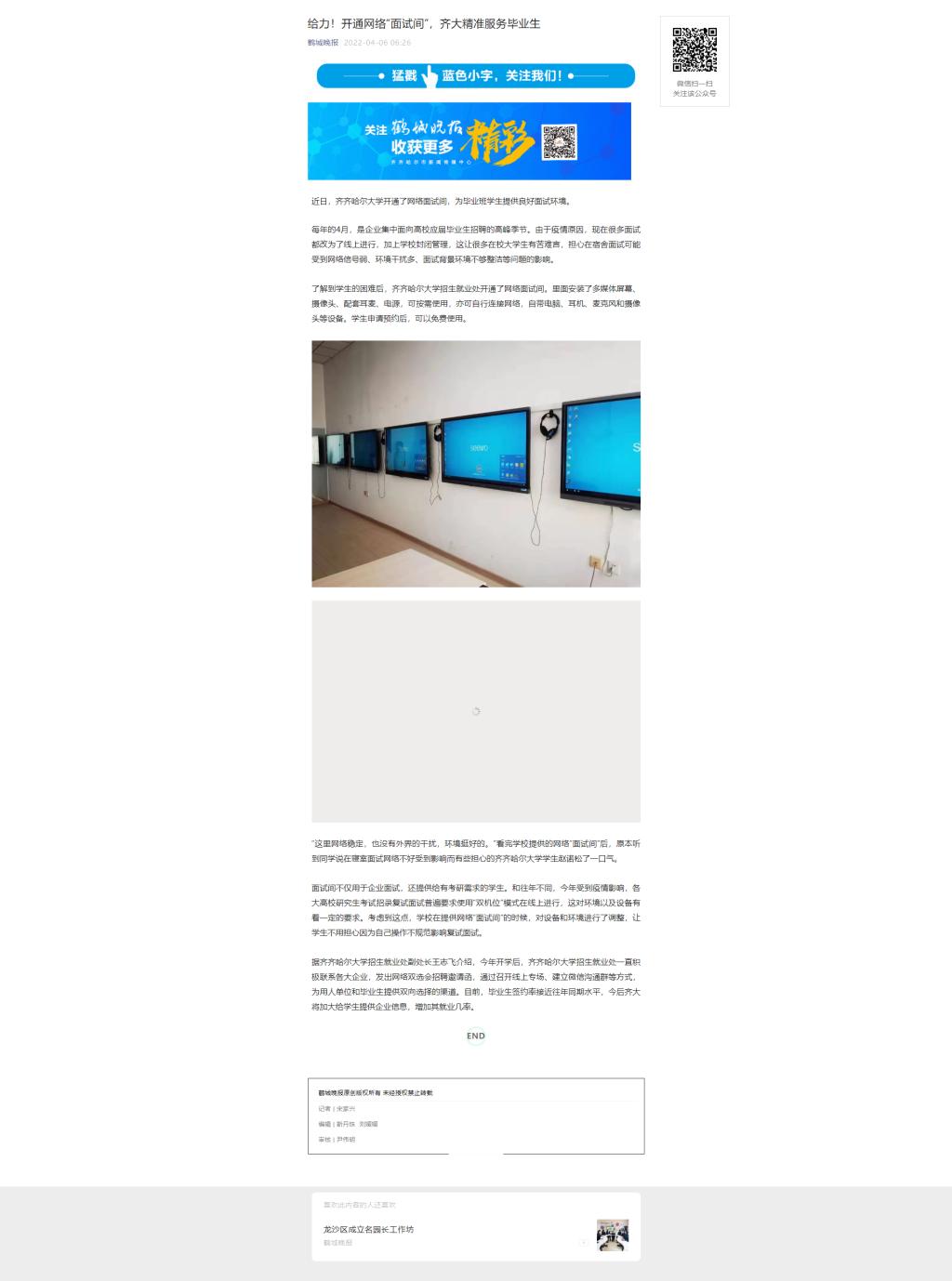【鹤城晚报】齐大开通网络“面试间”让学生轻松应聘