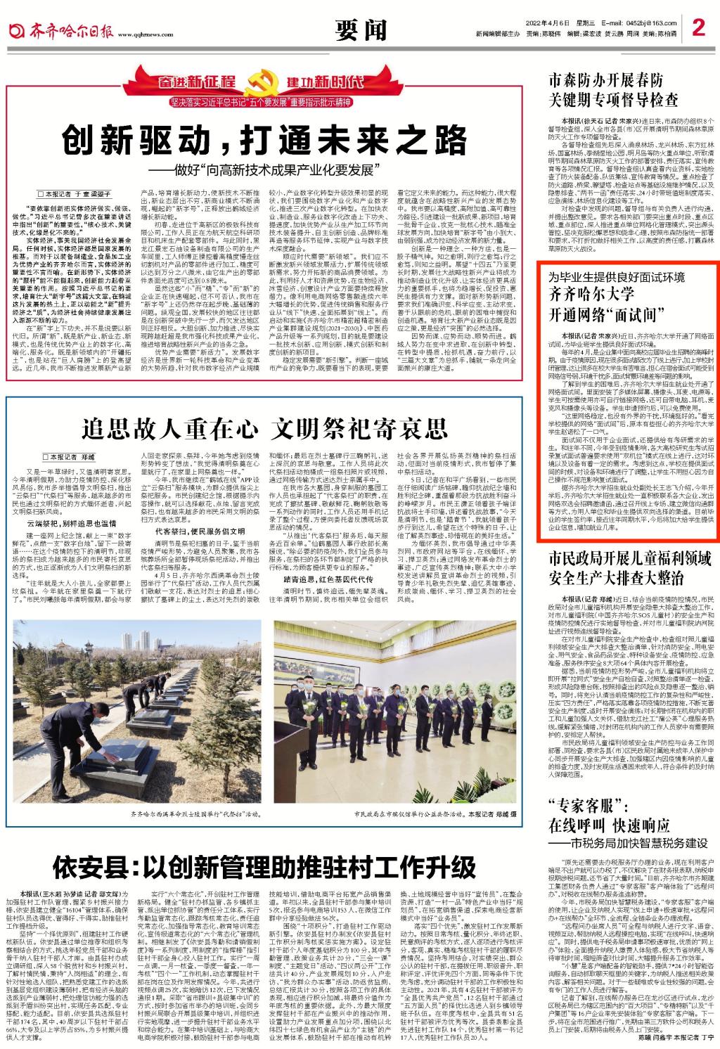 【鹤城晚报】齐大开通网络“面试间”让学生轻松应聘