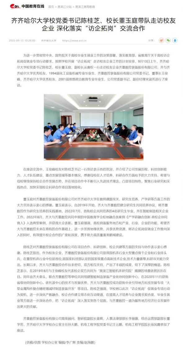【中国教育在线】欧冠官方网站校党委书记陈桂芝、校长董玉庭带队走访校友企业 深化落实“访企拓岗”交流合作