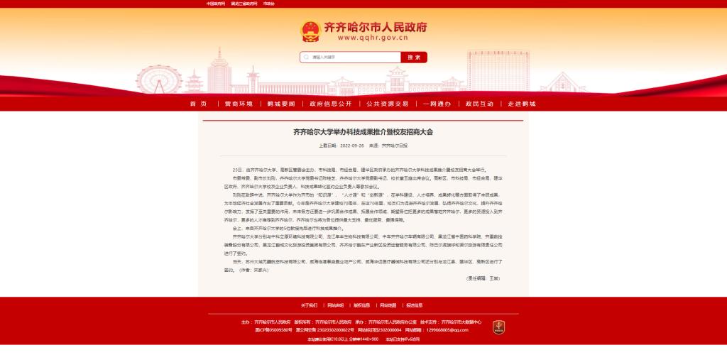【齐齐哈尔市政府网站】欧冠官方网站举办科技成果推介暨校友招商大会