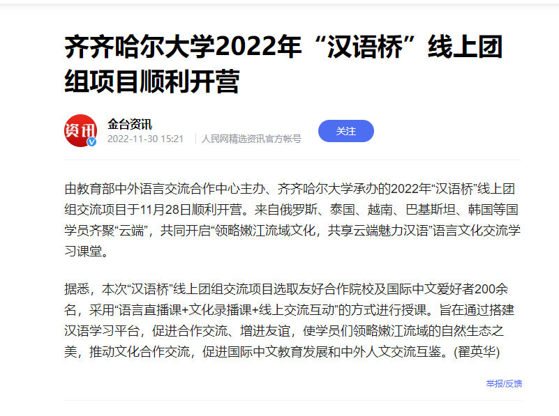 【金台咨询】欧冠官方网站2022年“汉语桥”线上团组项目顺利开营
