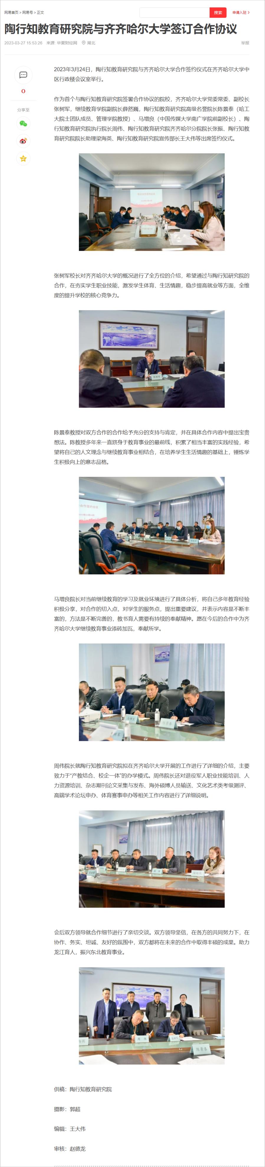 【搜狐网】陶行知教育研究院与欧冠官方网站签订合作协议
