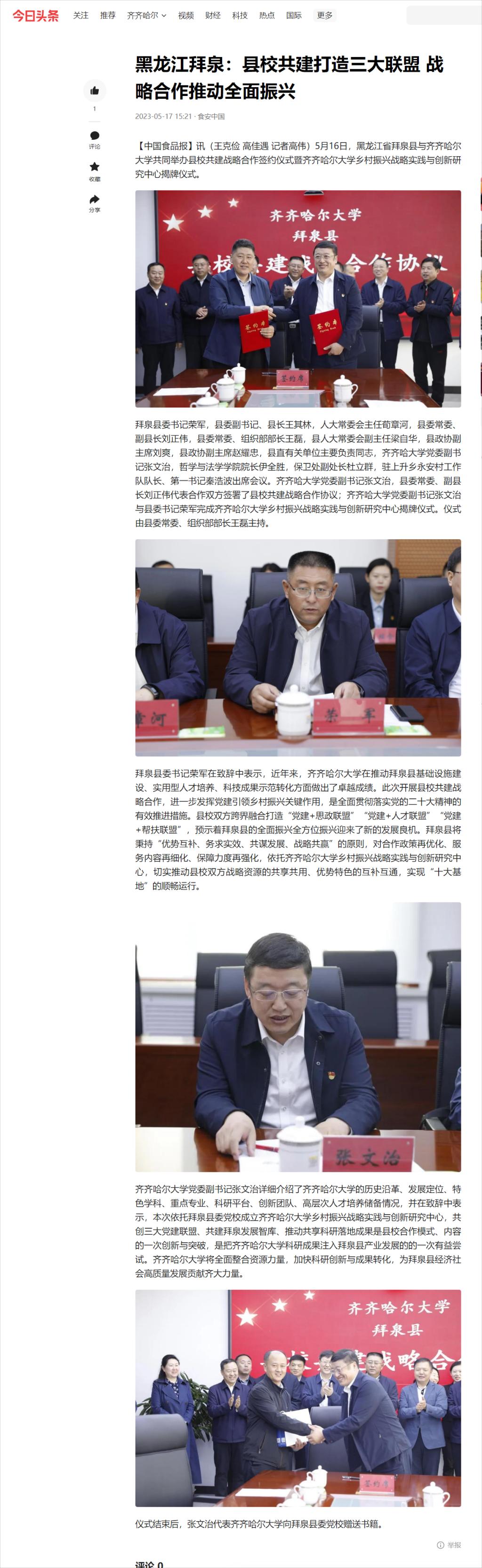 【今日头条】黑龙江拜泉:县校共建打造三大联盟 战略合作推动全面振兴