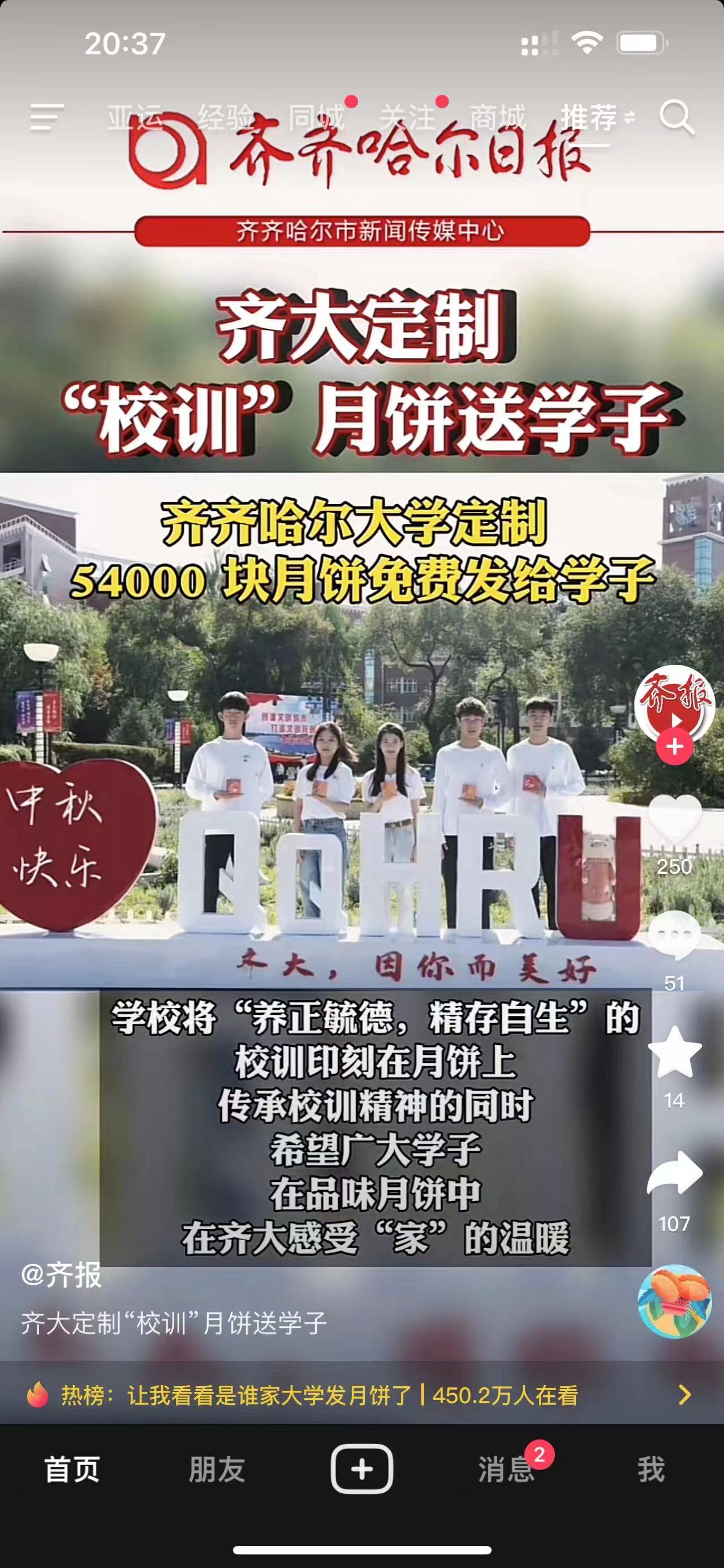 【齐齐哈尔日报】齐大定制“校训”月饼送学子