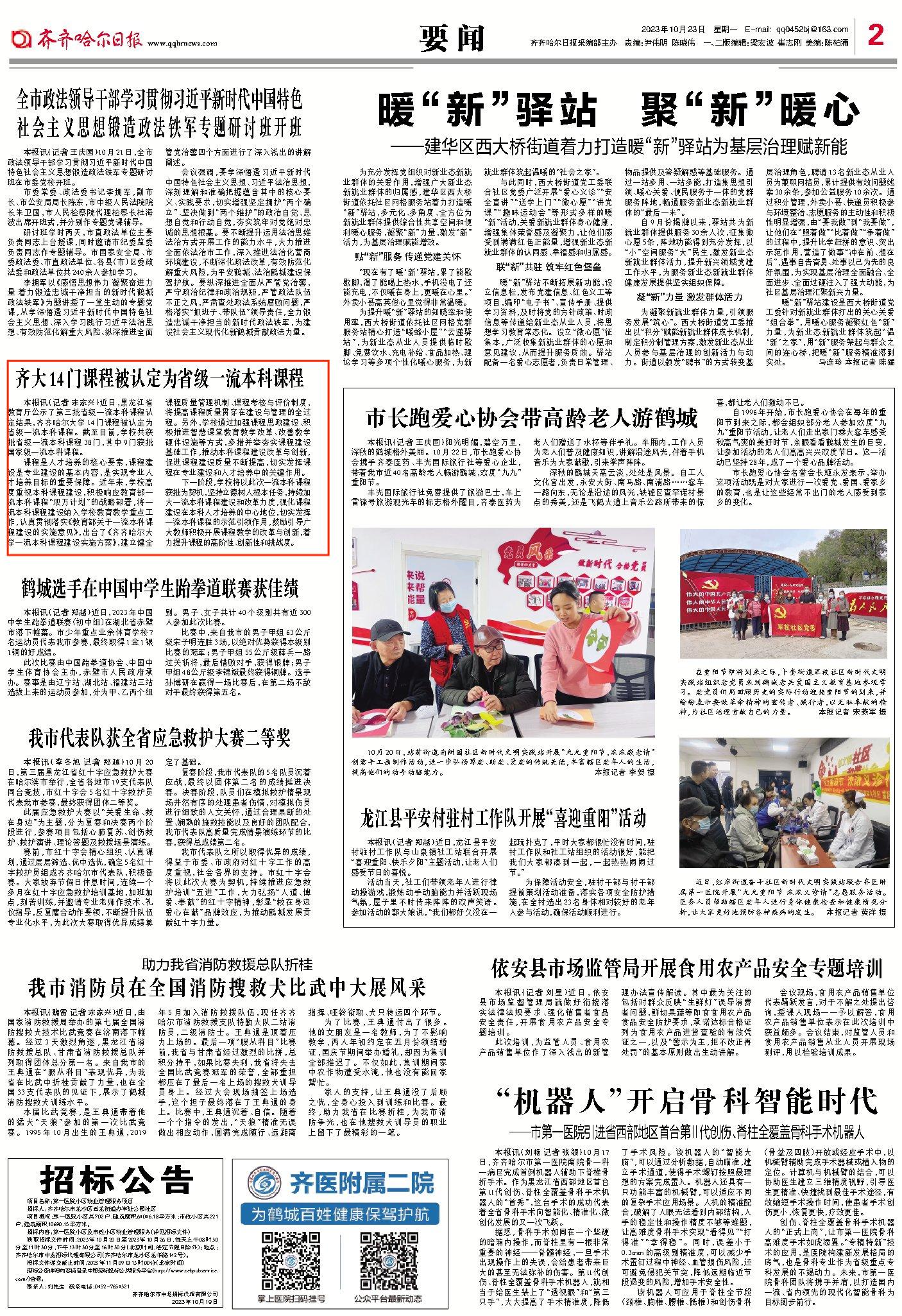 【鹤城晚报】齐大14门课程被认定为省级一流本科课程