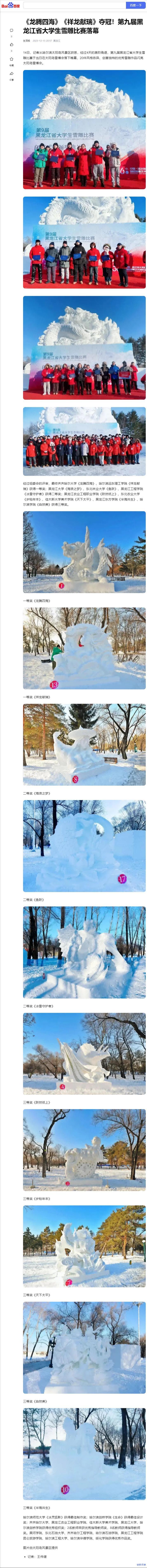 【生活报】《龙腾四海》《祥龙献瑞》夺冠!第九届黑龙江省大学生雪雕比赛落幕