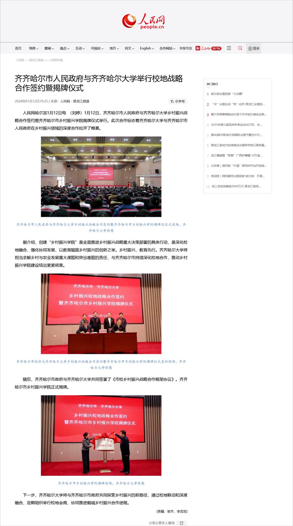 【人民网】齐齐哈尔市人民政府与欧冠官方网站举行校地战略合作签约暨揭牌仪式