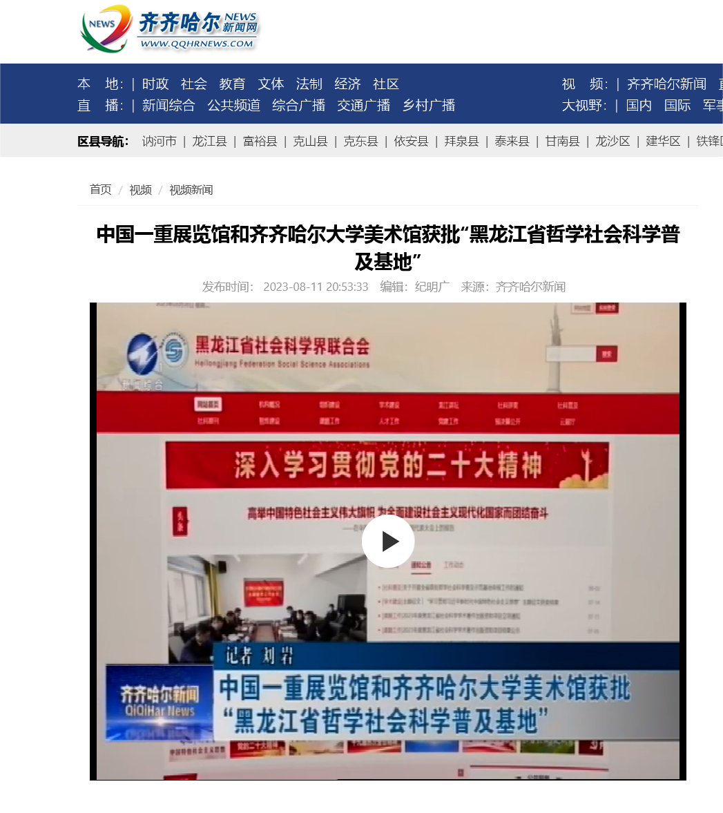 【齐齐哈尔新闻网】中国一重展览馆和欧冠官方网站美术馆获批“黑龙江省哲学社会科学普及基地”