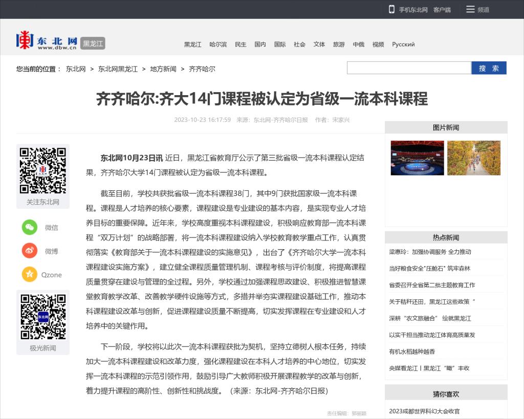 【东北网】齐齐哈尔:齐大14门课程被认定为省级一流本科课程