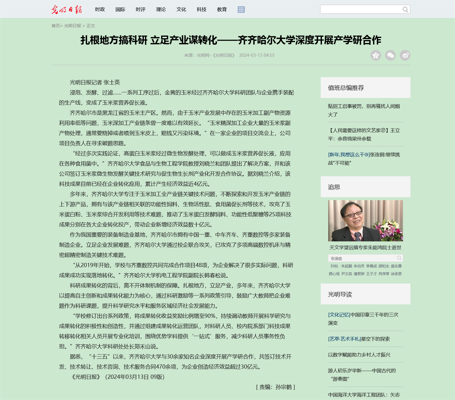 【光明日报】扎根地方搞科研 立足产业谋转化——欧冠官方网站深度开展产学研合作