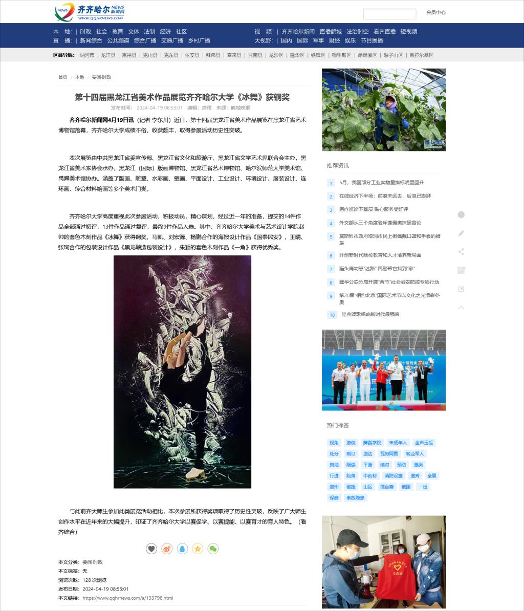 【齐齐哈尔新闻网】第十四届黑龙江省美术作品展览欧冠官方网站《冰舞》获铜奖