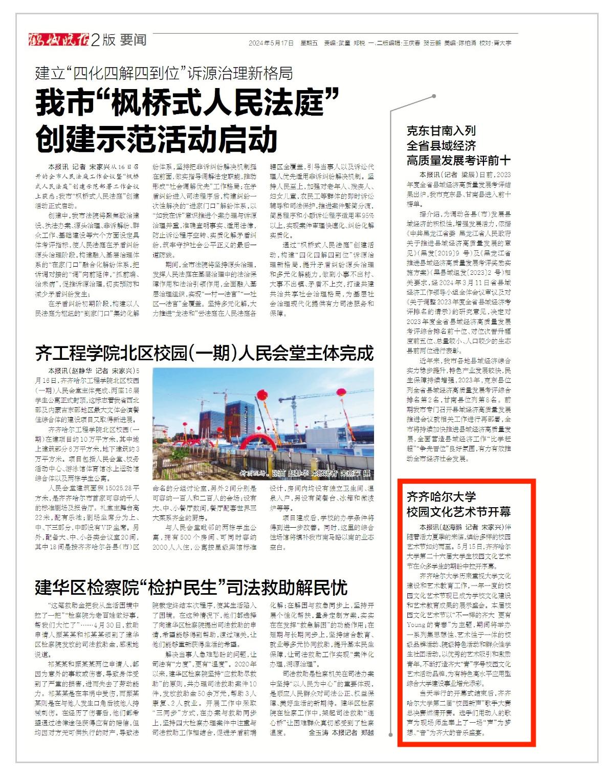 【齐齐哈尔日报】欧冠官方网站校园文化艺术节开幕