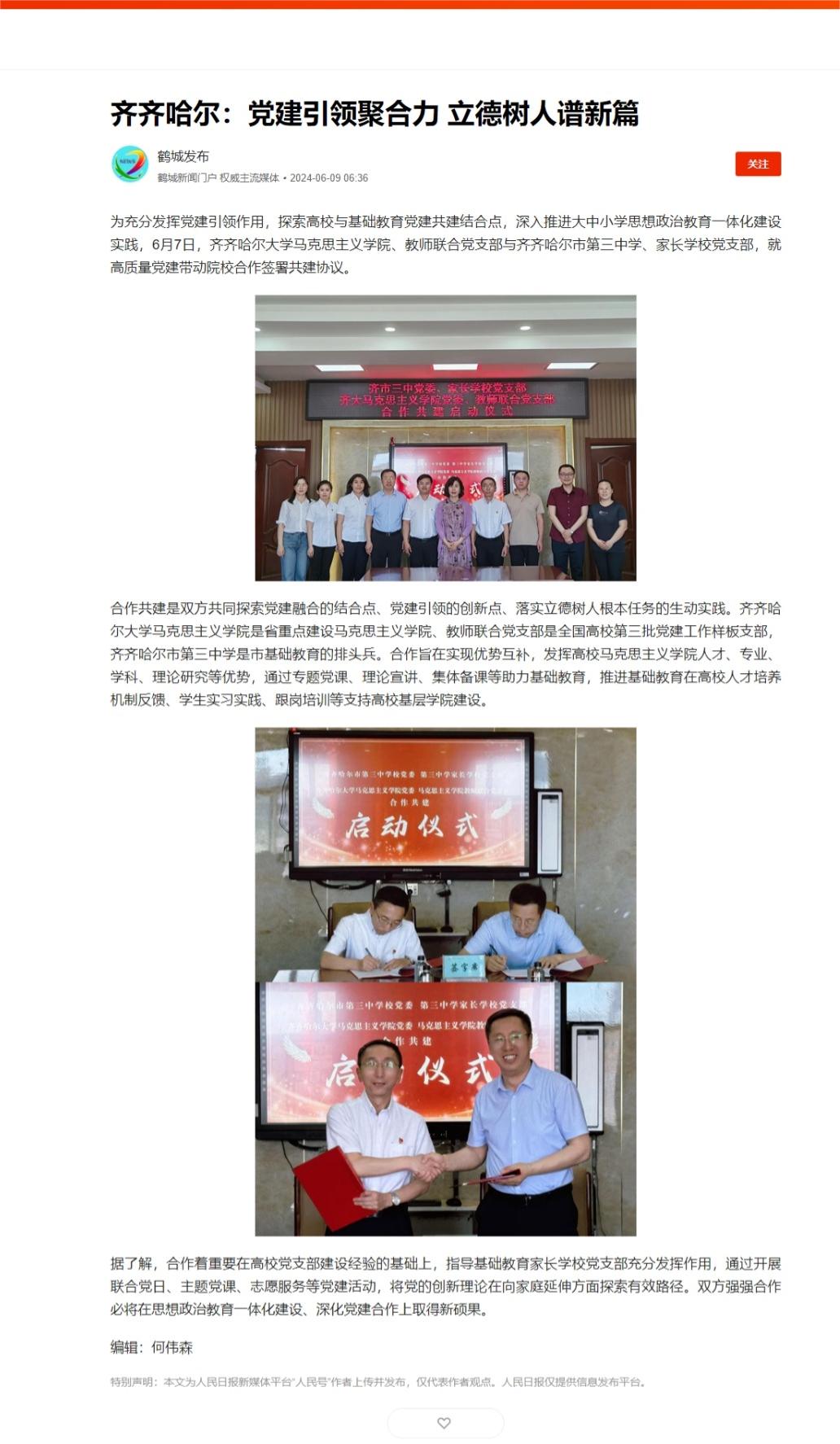 【鹤城发布】齐齐哈尔:党建引领聚合力 立德树人谱新篇