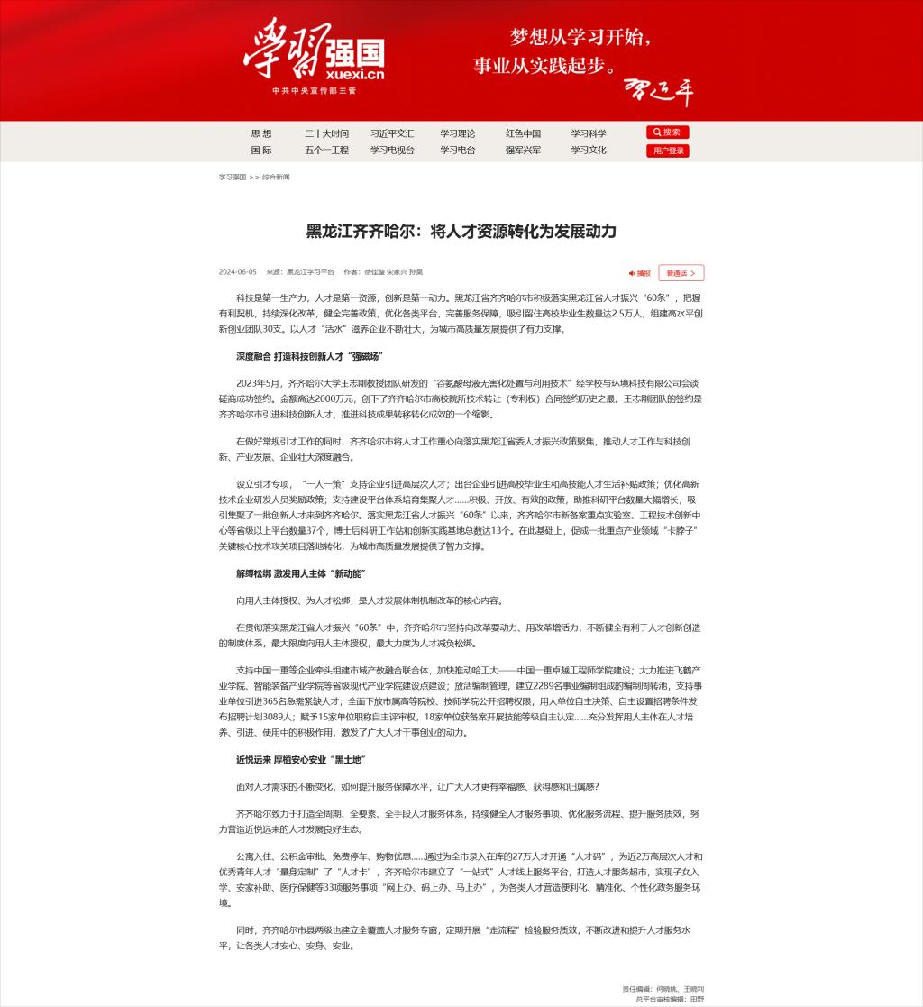 【学习强国】黑龙江齐齐哈尔:将人才资源转化为发展动力