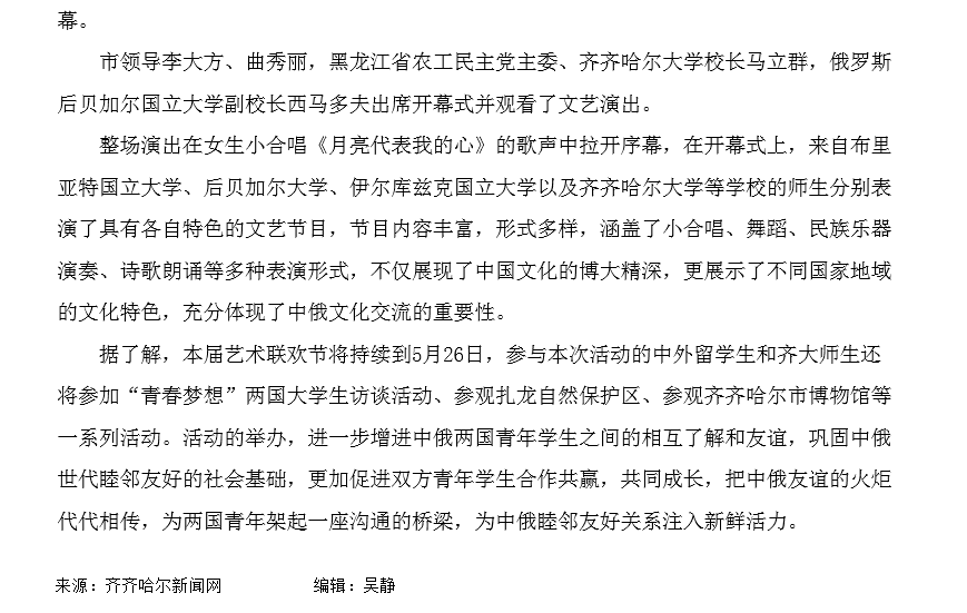 【齐齐哈尔新闻网】欧冠官方网站第八届中俄大学生艺术联欢节开幕