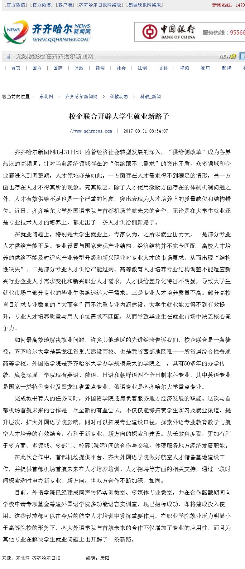 【齐齐哈尔日报】校企联合开辟大学生就业新路子