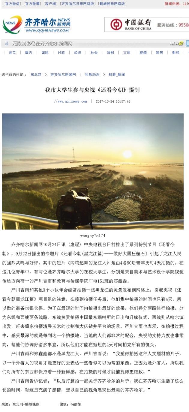 【鹤城晚报】我市大学生参与央视《还看今朝》摄制