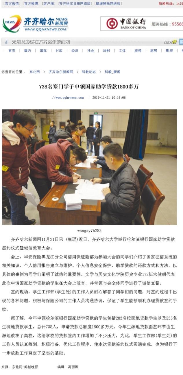 【鹤城晚报】738名寒门学子申领国家助学贷款1800多万