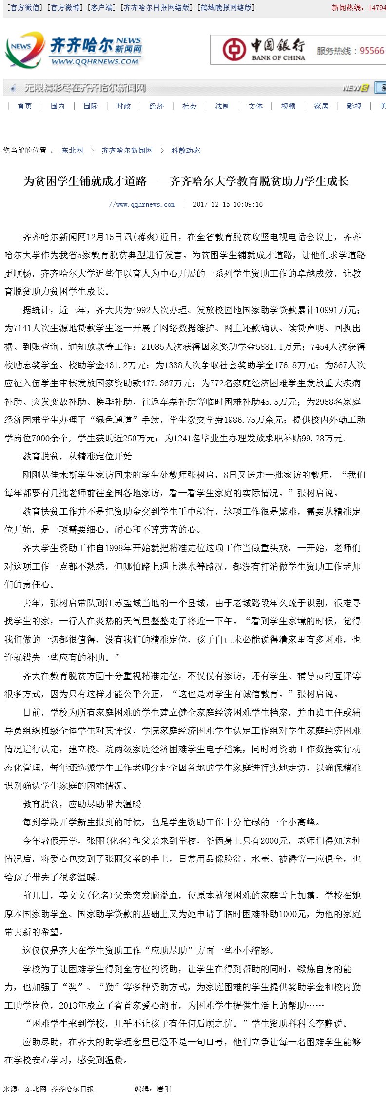 【齐齐哈尔日报】为贫困学生铺就成才道路